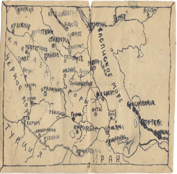 Рис 2. В письме своему отцу, мой прадедушка нарисовал карту. Он очень увлекался географией и любил рисовать картых разных частей света.