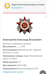 28.03.1945- «Орден Отечественной войны 2 степени»