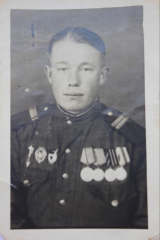 Родился в 1918 г. Пошел воевать в 23 года в ряды Советской армии против фашистских захватчиков, оставив в тылу беременную жену. Воевал на Ленинградском фронте, был дважды ранен.